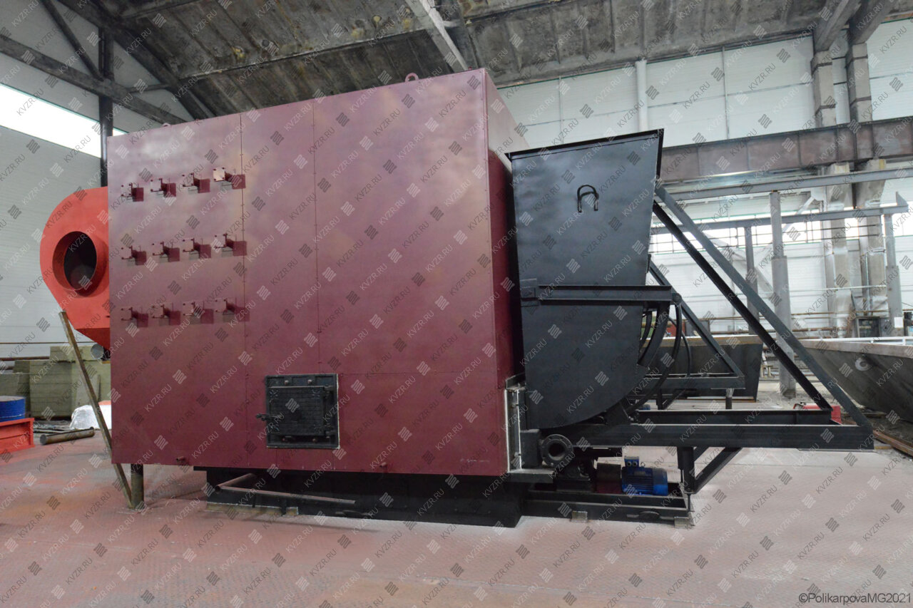 Механические котлы КВм с топками ЗП РПК поставляются двумя блоками. Топочный блок и топка с опрокидывающими колосниками. Топливо в бункер забрасывателя подается транспортером топливоподачи. На фронте установлена плита для крепления забрасывателя, на фронте и на боковой стенке котла установлены дверки для обслуживания топки и контроля процесса горения.