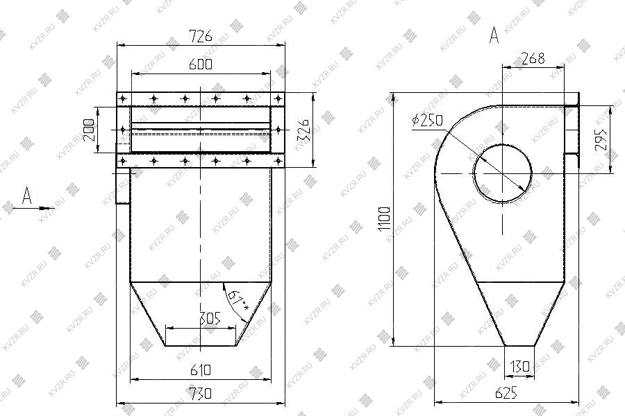 Внутренний диаметр корпуса циклона ЦН, мм700