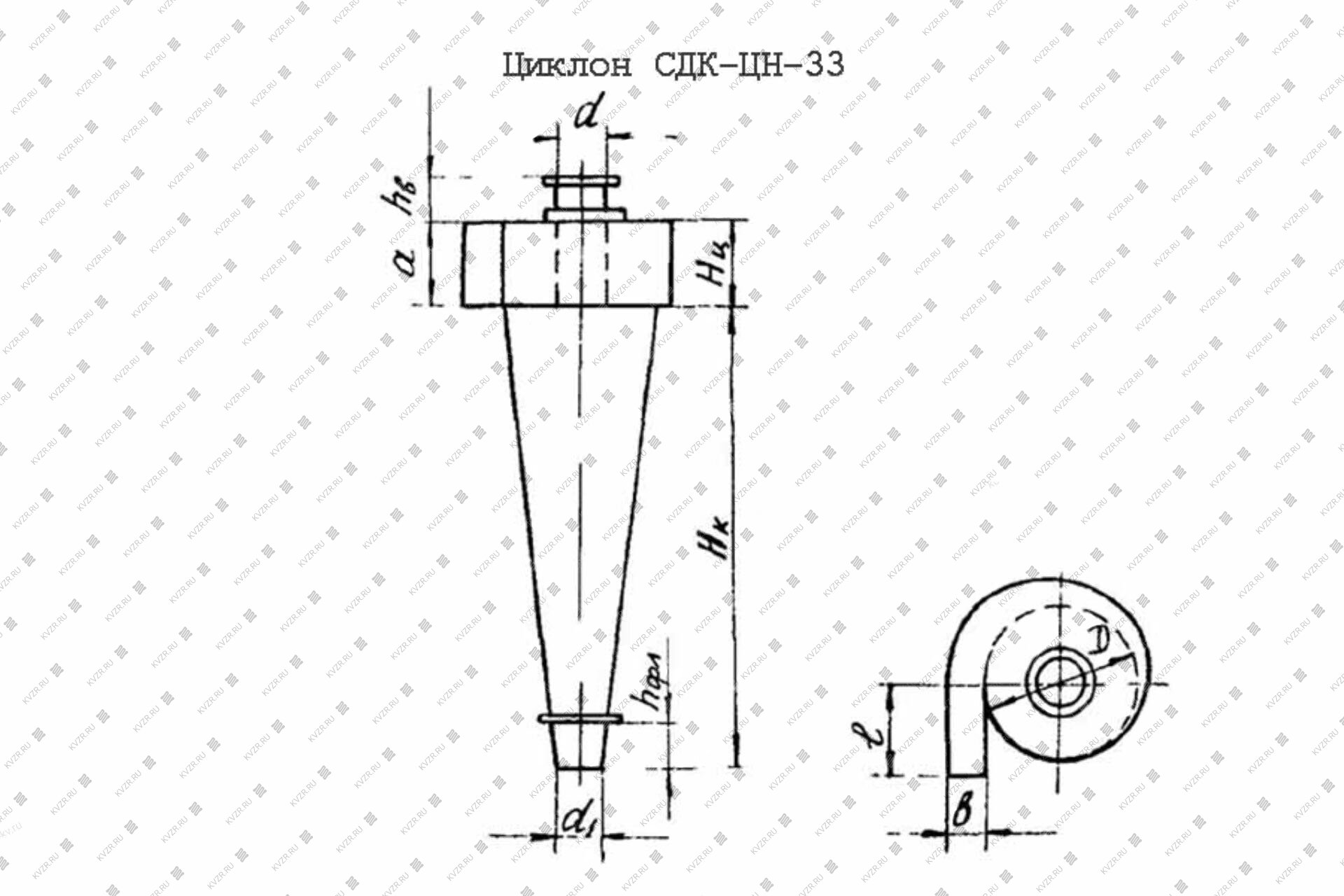 Циклон для пыли СДК ЦН 33 900 конический, в верхней части которого находится небольшая цилиндрическая вставка с входным патрубком спиралевидной формы для направления входящего запыленного потока. В середине корпуса располагается вертикальная стальная труба для удаления очищенного воздуха. Нижняя коническая часть крепится к бункеру для сбора пыли, который снабжен шиберным или шлюзовым затвором с ручным или электрическим приводом. Конические агрегаты обеспечивают наибольшую эффективность пылеулавливания.