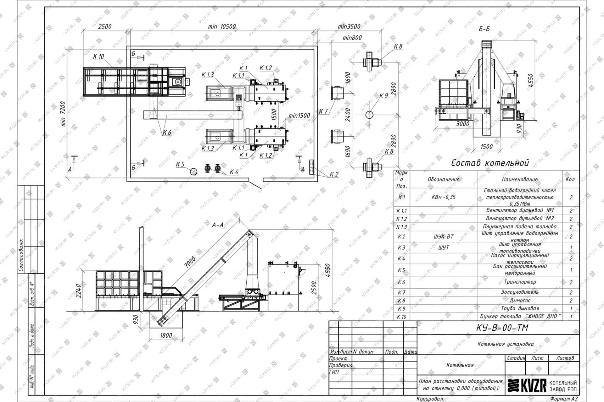 Монтаж водогрейного котла на опилках 500 кВт и вспомогательного оборудования в котельной должно производиться в соответствии с проектом и учетом требований СП 89.13330. 2016 «Котельные установки. Актуализированная редакция СНиП II-35-76» и «Правил устройства и безопасной эксплуатации паровых котлов с давлением пара не более 0,07 МПа (0,7 кгс/см2), водогрейных котлов и водоподогревателей с температурой нагрева воды не выше 388 К (115 С). Правильный монтаж котла – залог его надежной и долгой работы.